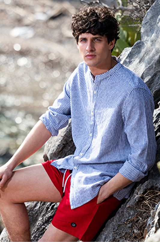 Λινό Πουκάμισο Rebase Μαο Γιακάς