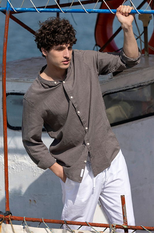 Λινό Πουκάμισο Rebase Μαο Γιακάς | Καφέ